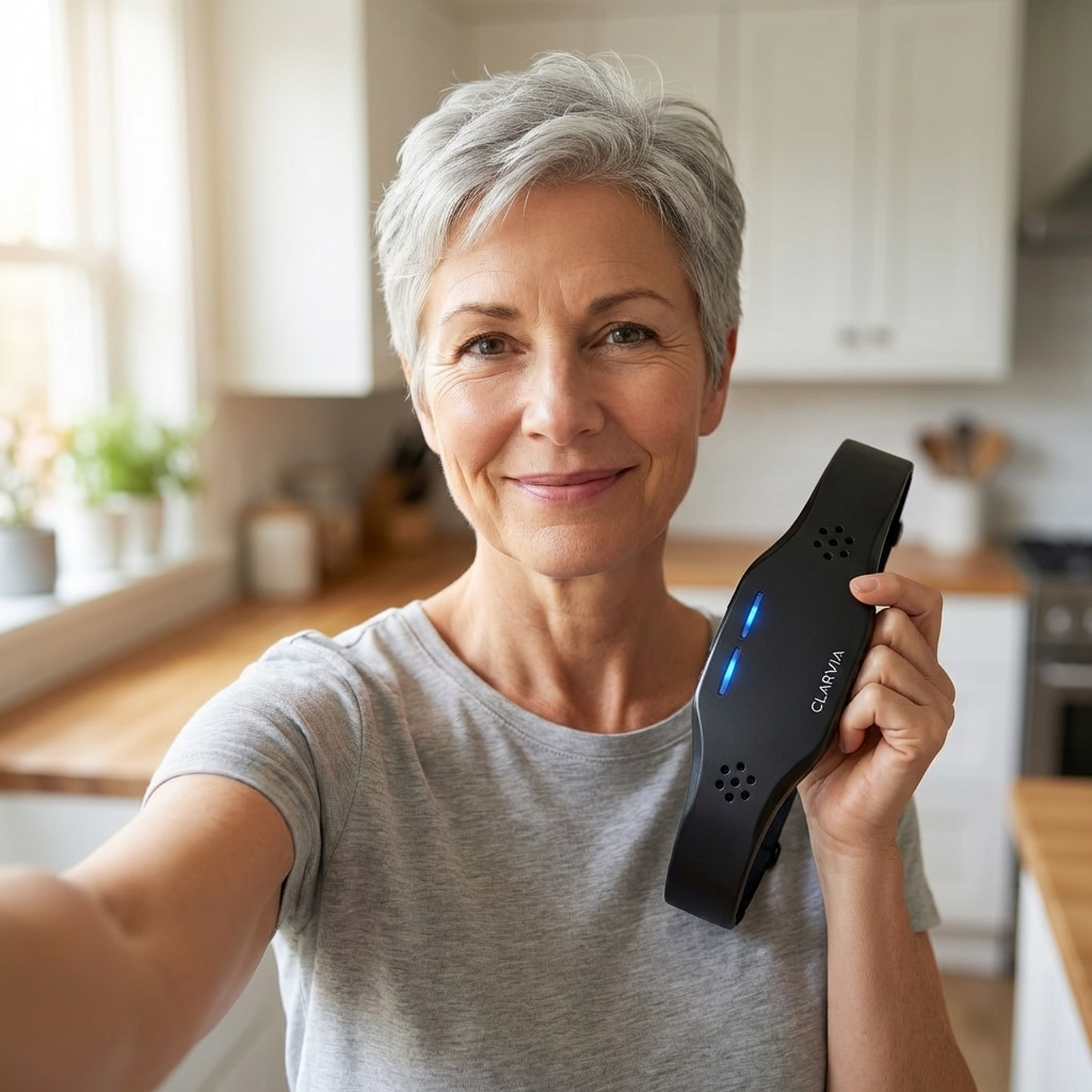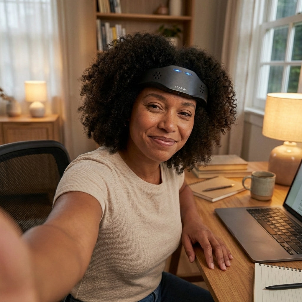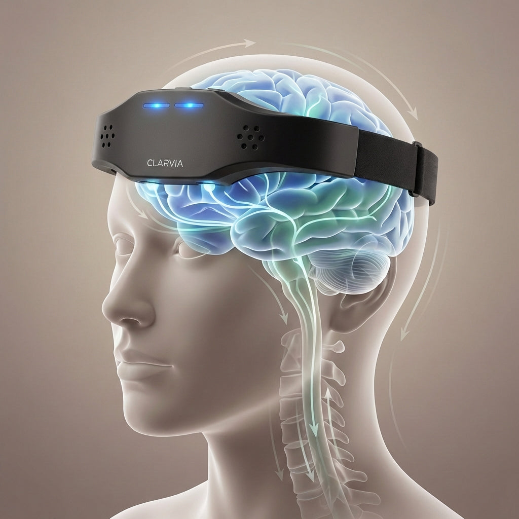 The Clarvia Reset is designed to be worn across the forehead, an area closely connected to the brain’s emotional regulation centers. Through gentle stimulation, it supports communication between the thinking brain and the body’s stress response. With consistent use, this may help encourage steadier nervous system patterns over time.